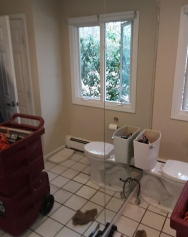 Job completed for Bathroom remodel in Newtown, CT after leaky toilet damaged flooring