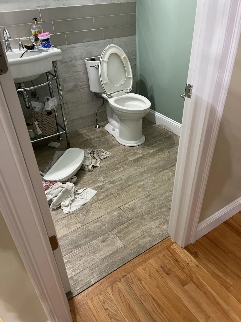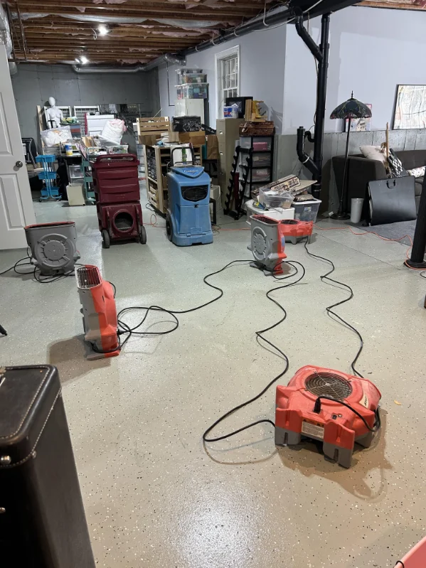 We inspected and assessed all of the damaged areas from the water damage caused by the toilet overflow. After helping them call in the claim we jumped right into action. We began to cut out saturated materials, disinfected the affected areas, then set up drying equipment.