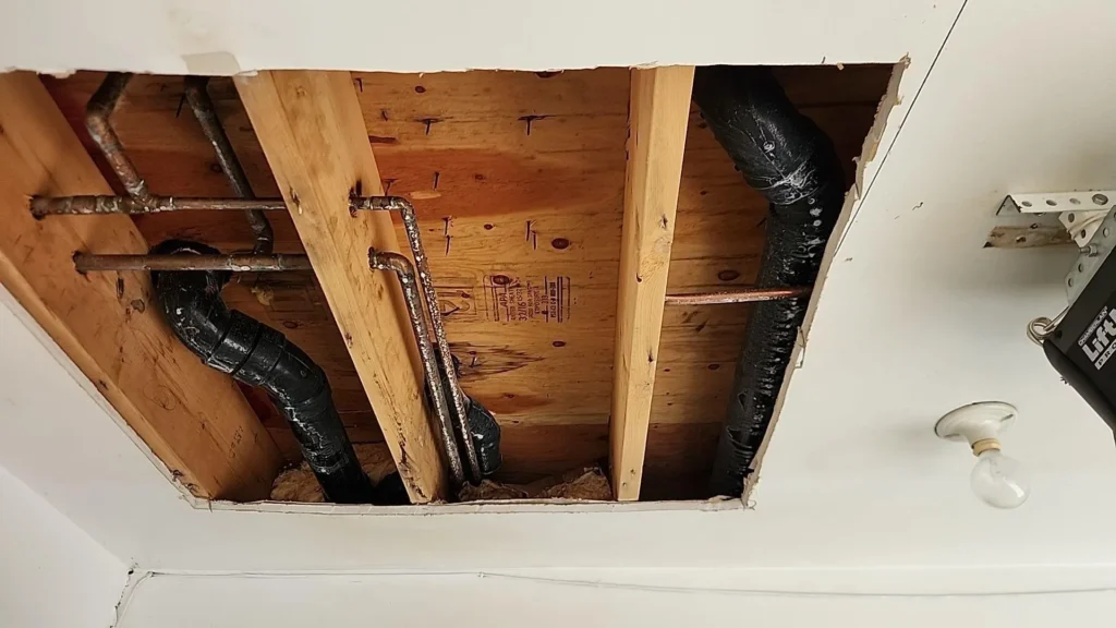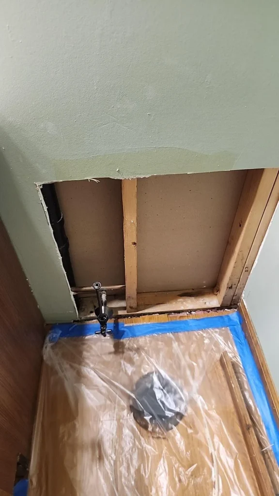 A local plumber was brought in to repair the leak. Upon completion of the plumbing repair, New England Restoration returned to restore the damaged areas.