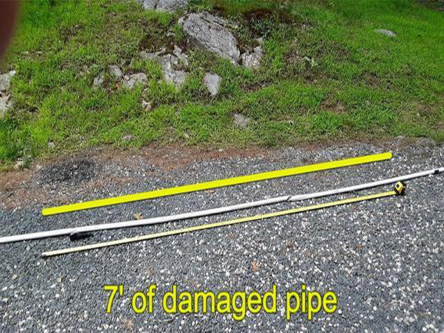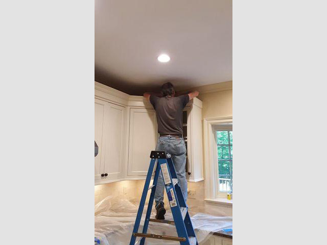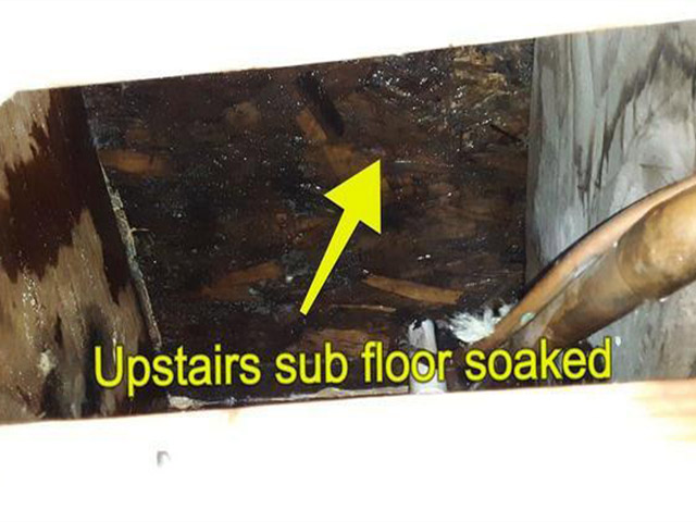 We received a call for a flooded ceiling that had breached in a basement. It was not obvious where the leak was initially coming from. Using our Thermal imaging unit, we were able to trace the moisture and get a better understanding of the water path. We narrowed it down to a leaking condensate line from the AC unit in the attic. We removed the 7 feet of damaged pipe and were able to save the kitchen and cabinets with use of multiple drying techniques. The following are some photos of the work in progress.